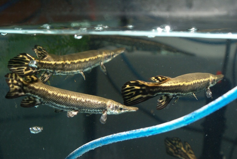 Young of year Cuban Gars (Atractosteus tristoechus) reared for sustainable feed in aquaculture experiments.