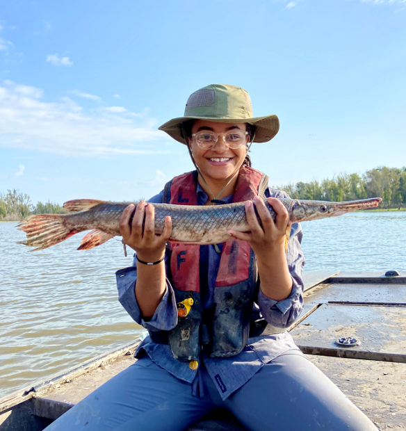 Sarah was born and raised in Raceland, Louisiana, and received her B.S. in biology (marine biology concentration) from Nicholls State University (2018). Her undergraduate thesis research investigated the ability of invasive Apple Snails Pomacea maculata to host the parasitic Rat Lungworm Angiostrongylus cantonensis. While she enjoyed studying invertebrates, her current research involves studying the spawning and early life history of the Spotted Gar Lepisosteus oculatus in Louisiana. Sarah successfully completed her thesis in Spring 2020.