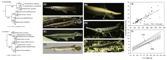 Wright, J.J., S.R. David, and T.J. Near. 2012. Gene trees, species trees, and morphology converge on a similar phylogeny of living gars (Actinopterygii: Holostei: Lepisosteidae), an ancient clade of ray-finned fishes. Molecular Phylogenetics and Evolution 63: 848-856. [PDF]